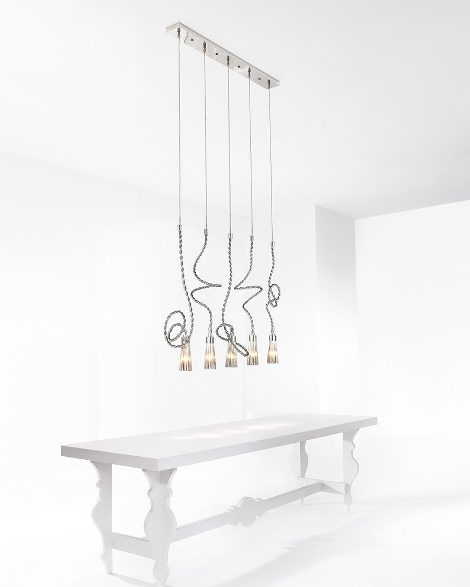 As an award-winning furniture designer he for many years designed buildings and interiors for fashion brands, including the headquarters of BRAND VAN EGMOND. His interior designs are always minimalist, in contrast to his lighting designs which have a powerful sculptural presence. He considers his lighting objects to be “the cherry on the cake”. His way of working is quite specific. Immediately after defining the concept he starts working in the workshop like a sculptor; experimenting and crafting while having the object grow in his hands, often with unexpected results. Therefore the journey is just as exciting and important as the destination.
