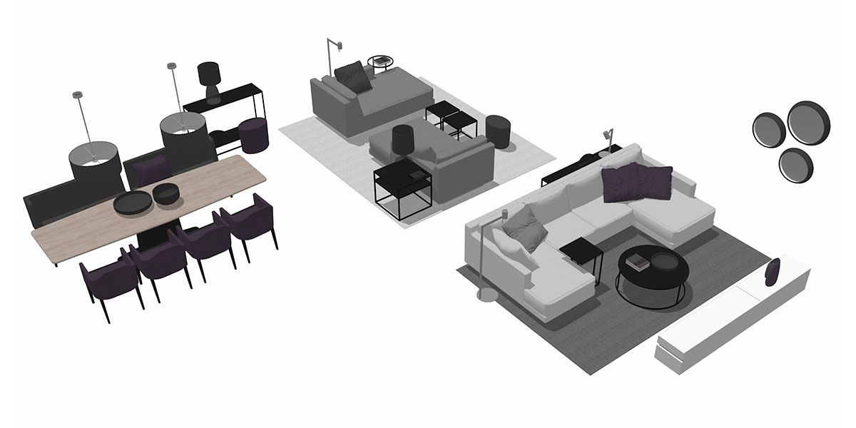 Detailliert ausgearbeitete 3D Einrichtungs-Illustrationen mit den Christine Kröncke Produktmodellen - individuell und ausdrucksstark. Leicht verständliche und zielführende virtuelle Planungen. Damit macht Einrichten richtig Spass.